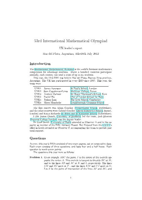 53rd International Mathematical Olympiad Uk Imo Register