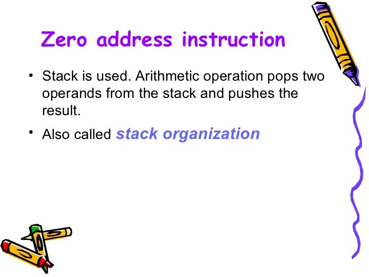 It may for example enable stack processing. 0-operand zero-address machines so called stack machines. Zero Address Instructions A stack based computer do not use address field in instructionTo evaluate a expression first it is converted to revere Polish Notation ie.